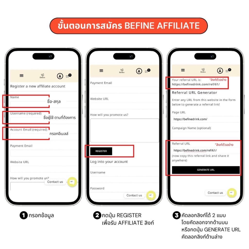 เข้าร่วม Befine Affiliate Program กับเรา ทุกๆคนที่เข้ารวมทั้ง Affiliates, Bloggers, Creators and Influencers จะได้รับค่าตอบแทนที่สูงอย่างต่อเนื่อง และได้รับข้อเสนอดีๆเป็นประจำ เพื่อแนะนำคนอื่นๆ ทั้ง Code ส่วนลดพิเศษต่างๆ เพื่อให้คนที่คุณแนะนำสนใจในผลิตภัณฑ์เป็นอย่างสูง